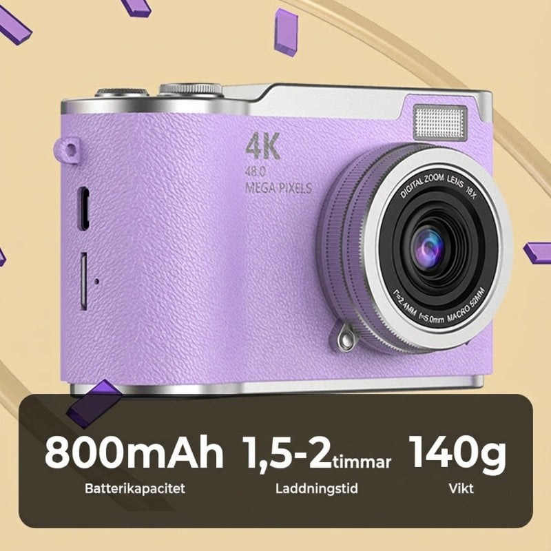 4K HD-BILDKVALITET: Med 4K HD-upplösning tar den hÀr kameran skarpa och levande bilder och videor, vilket ger professionell klarhet för alla dina foto- och videografibehov.