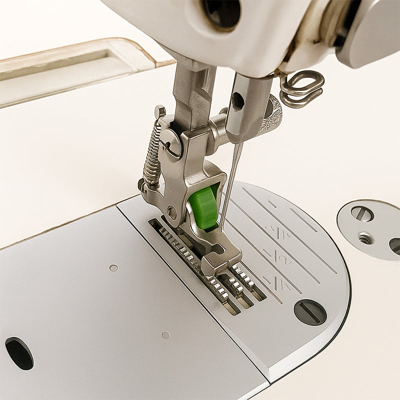 ANVÄNDARVÄNLIG DESIGN: Det integrerade blixtlåset och snäppfästet eliminerar behovet av förstrykning eller tråkiga justeringar. Sätt bara fast den på din maskin och börja sy – inga extra steg krävs.