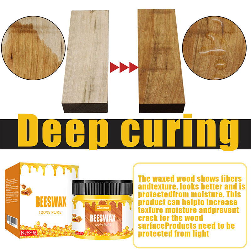 ÅTERSTÄLLER GLANS OCH FÖREBYGGER SPRICKOR: Vår bivaxrengörare förbättrar träets naturliga struktur och glans, vilket framhäver ådringen för en livfull, högglansig finish. Den ökar också fuktretentionen och förhindrar sprickor, vilket bevarar din möbels skönhet och funktionalitet.