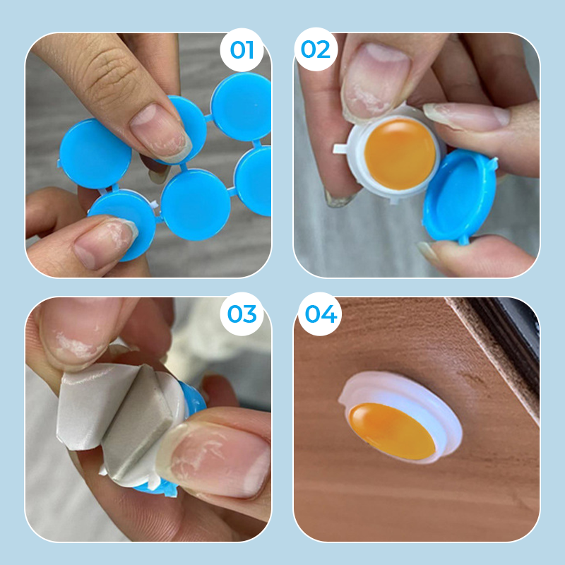 Bara dra av och placera klistermĂ€rkena pĂ„ vanliga gömstĂ€llen â inget kladd, inga fĂ€llor, inga sprayer. Perfekt för diskret placering i kök, badrum och hörn.
