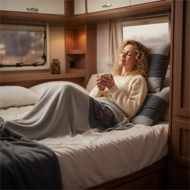 PREMIUMMATERIAL: Upplev överlägsen mjukhet och mild värme mot din hud. Detta högkvalitativa material är andningsbart men ändå isolerande, vilket ger optimal komfort oavsett om du sover middag i soffan eller vilar under en lång bilresa.