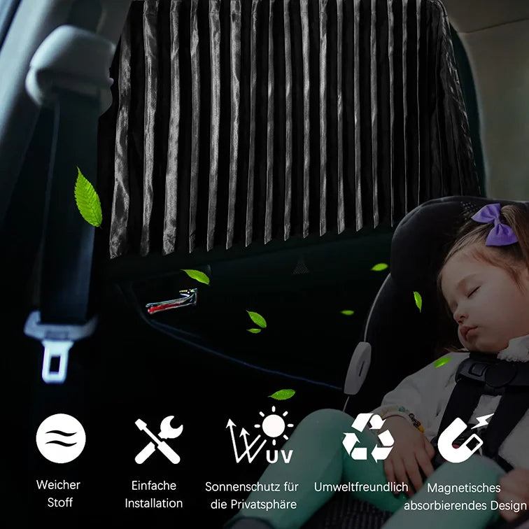 VÄrt högkvalitativa magnetiska solskydd för bilfönster kan blockera stora mÀngder solljus och skydda huden och ögonen pÄ ditt barn och din familj. Du behöver inte oroa dig för solbrÀnna, vilket garanterar en bekvÀm bilfÀrd för din familj. Ditt nya klÀdselmaterial för bilbarnstolen skyddar ocksÄ mot Äldrande och blekning.