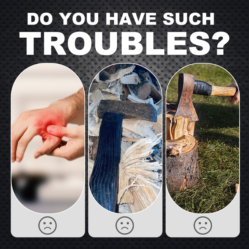 ERGONOMISKT TRĂHANDTAG: Yxan levereras med ett bekvĂ€mt, ergonomiskt utformat trĂ€handtag som ger ett sĂ€kert grepp. Det minskar tröttheten i handen och ger en bĂ€ttre anvĂ€ndarupplevelse vid lĂ„ngvarig anvĂ€ndning.