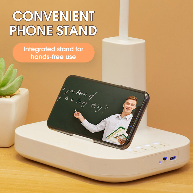 PRAKTISK TELEFONSTÅG – Kan användas som en praktisk telefonhållare integrerad i lampfoten. Perfekt för videosamtal, onlinelektioner eller att titta på handledningar handsfree medan du arbetar eller studerar vid skrivbordet.