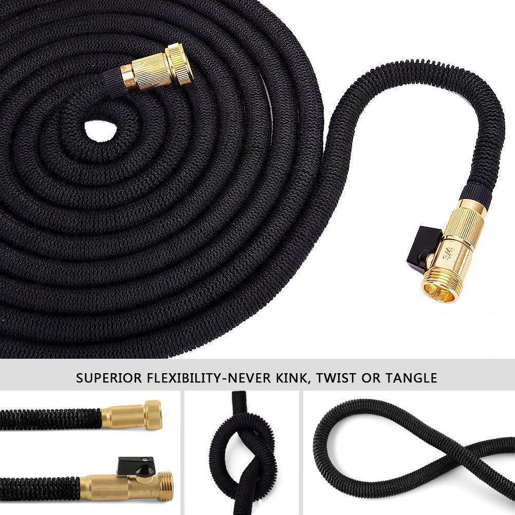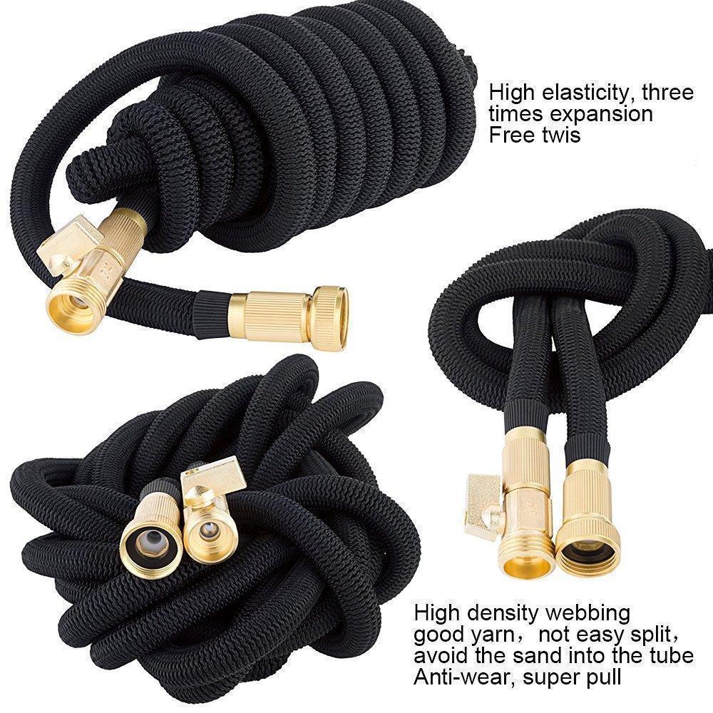 This hose makes watering projects easier than ever. When contracted, it fits into the palm of your hand so you can carry it with you to any other part of the yard. Then just attach the brass fittings to the connectors and water faucet to start it up again.