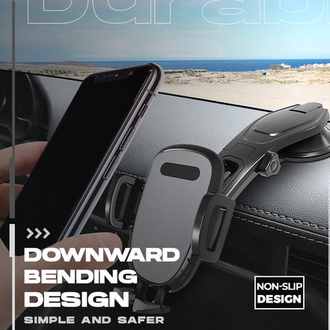 - "Suction Type Downward Bending Phone Mount" can be easily and firmly connected to the phone. Even if the road is bumpy, turning, braking or driving, the phone holder will not fall.