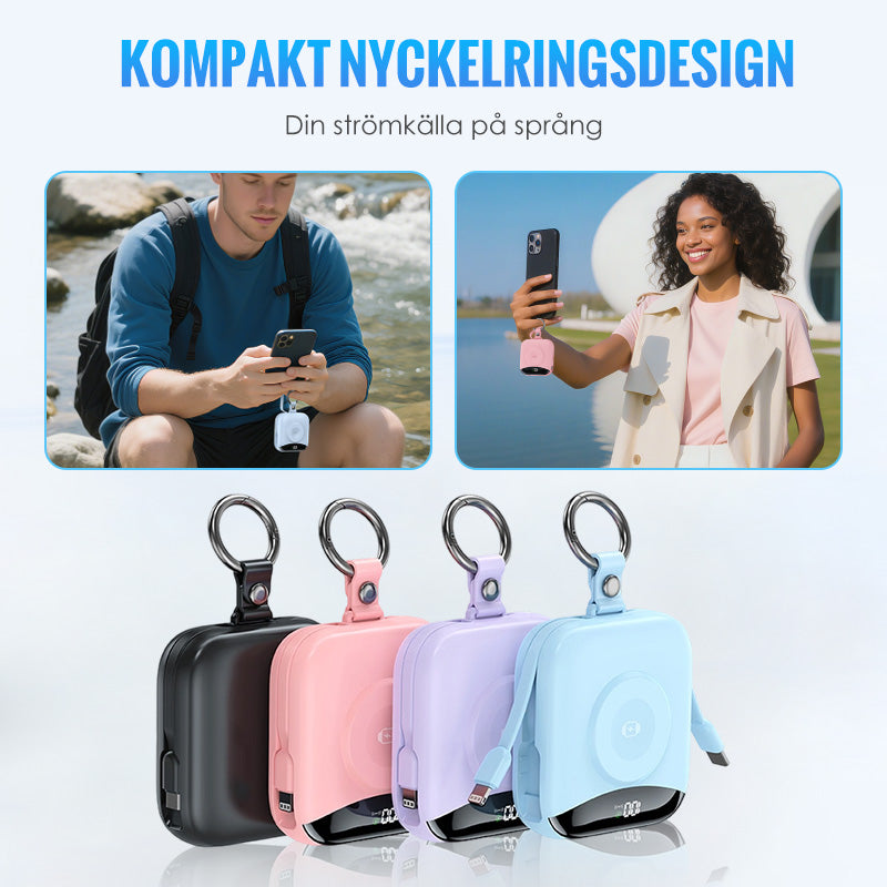 KOMPAKT OCH BÄRBAR DESIGN – Dess lätta och nyckelringsvänliga design gör att du enkelt kan fästa den i väskan eller bära den i fickan, vilket ger kraftfull laddning som du kan ta med dig vart du än gör utan att den tynger ner dig extra.