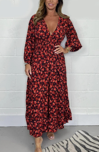 Women Printed Sexy Deep V-neck Dress Àr en fantastisk och lockande klÀnning. Med sitt fÀngslande tryck och djupa V-ringade design Àr den perfekt för att göra ett djÀrvt modeuttalande.