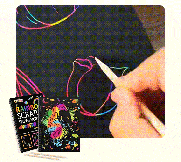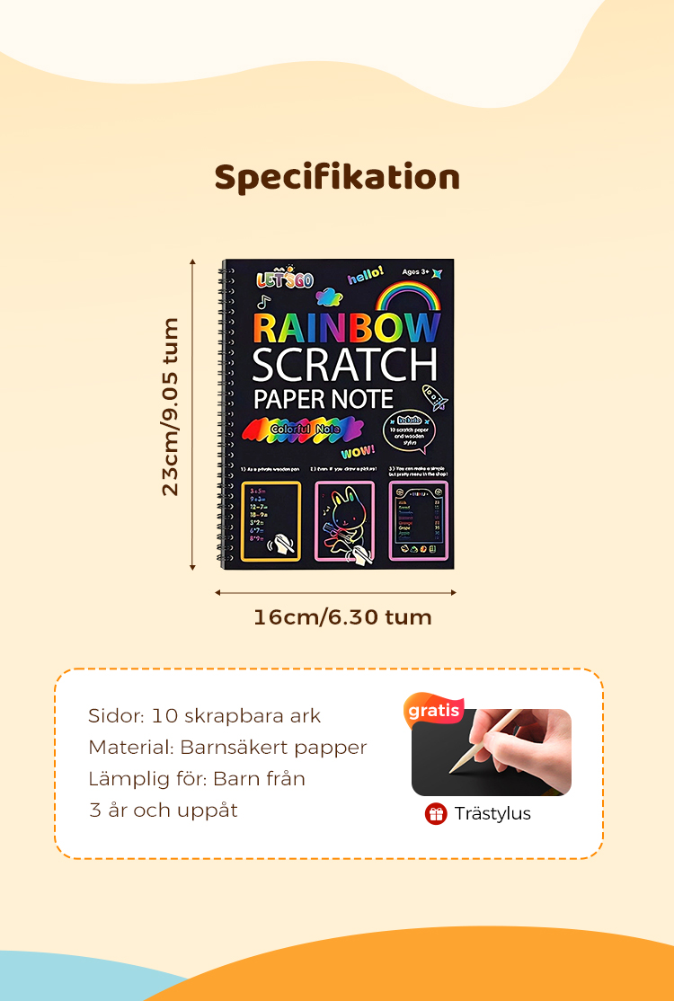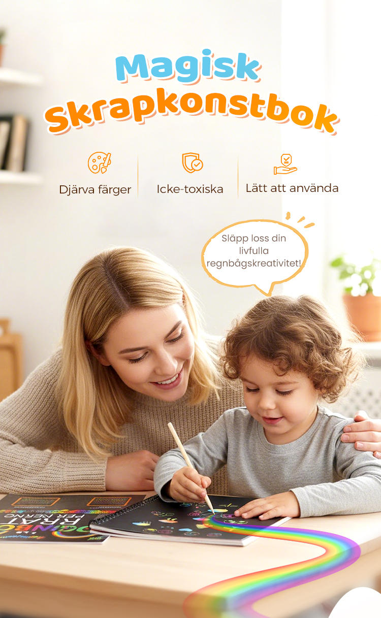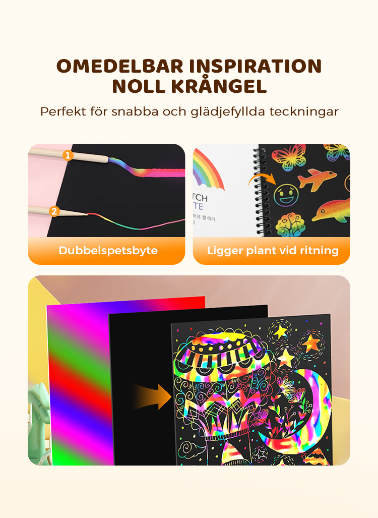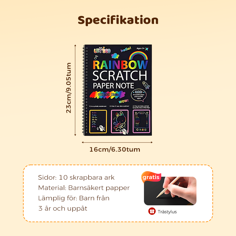 Regnbågens magiska skrappapper med träpenna