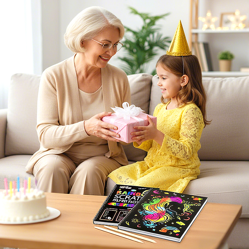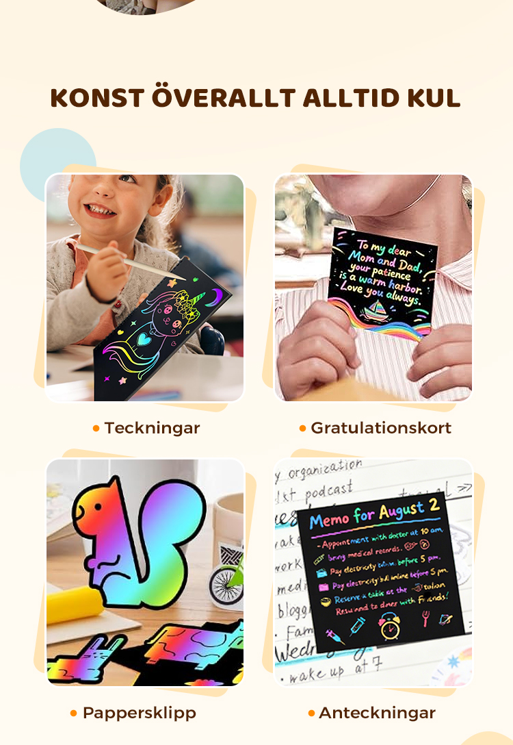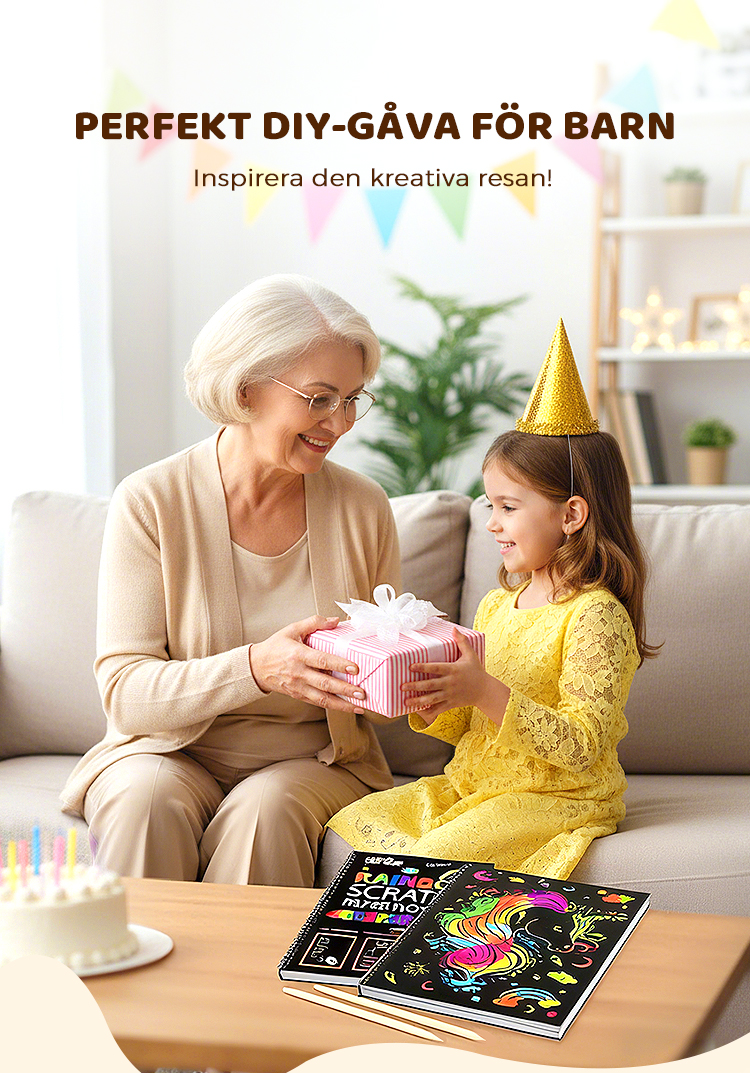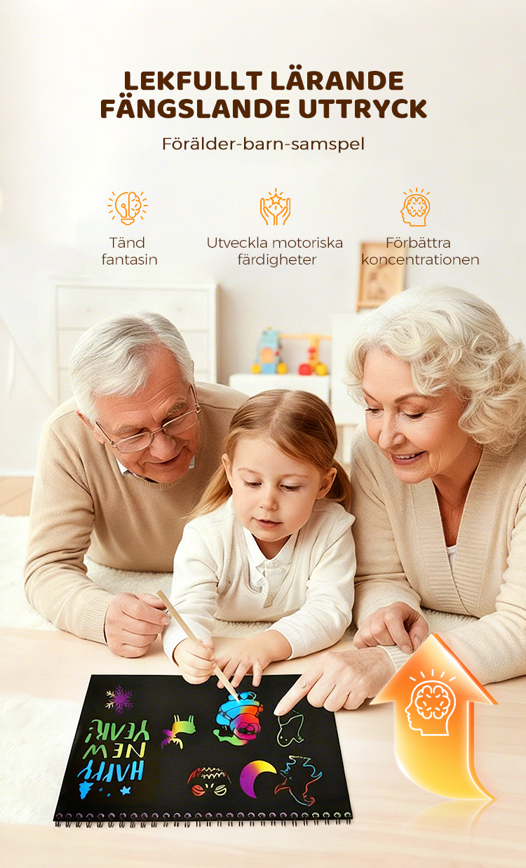Regnbågens magiska skrappapper med träpenna