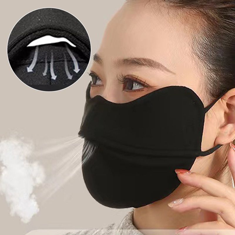 ANTI-IMMA : Öppningen av mun och näsa är utformad för att underlätta utflödet av utandningsluft, vilket effektivt förhindrar att glasögonen immar eller orsakar fukt i ansiktet, och det är mer bekvämt och naturligt att bära.